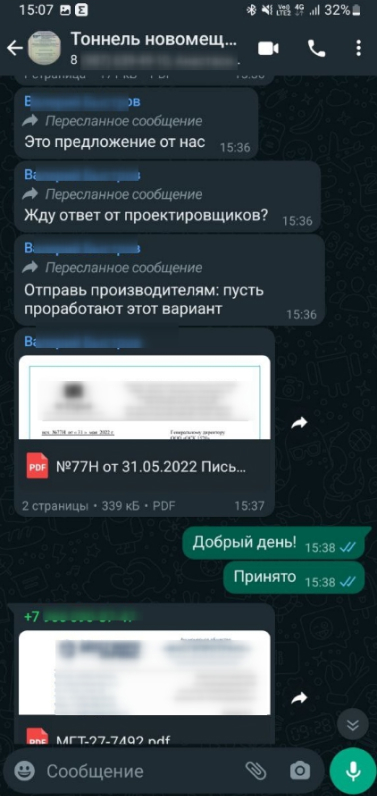 Создаётся Whatsapp -чат для проектной группы с участием Заказчика.